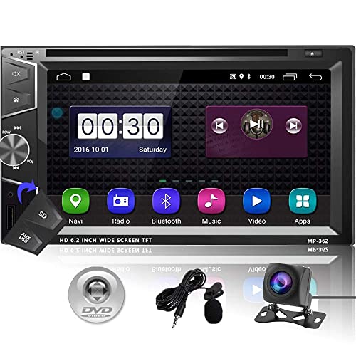 Super Big Clearance! Camecho Double Din Android Car Stereo Radio 6.2'' Touch Screen DVD/CD Player Build-in GPS Navigation WiFi Bluetooth Support Android iOS Mirror Link with FM/AM/USB/SD/APP Download+Backup Camera