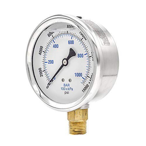 So you can check out the other reviews Featured Product PIC Gauge 201L-402V 4 Dial, 0/15000 psi Range, 1/2 Male NPT Connection Size, Bottom Mount Glycerine Filled Pressure Gauge with a Stainless Steel Case, Brass Internals, Stainless Steel Bezel, and Polycarbonate Lens at Amazon.com